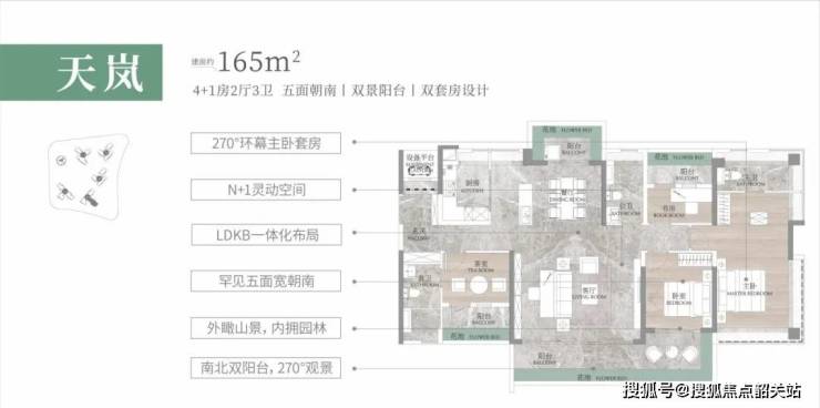 建面约165㎡大户型,三大极致打造相当震撼,朝南面宽达到约17.4米、近9米L型景观阳台、大方厅设计,景观阳台。