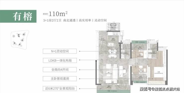 建面约110㎡,南向阳台近6米,显得很阔气,270°视野,更是难得,LDKB一体化设计,形成一个阔绰的方厅,