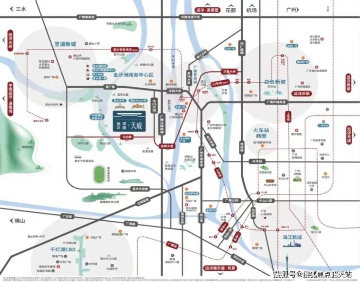 项目地处临广金沙板块核心,是广佛同城桥头堡,区位优势显著:近广州环城高速、广佛珠江高速、沈海高速,自驾 30 分钟可达珠江新城、白云、荔湾、千灯湖等广佛核心区域;交通配套完善,享 “1 有轨电车 2 地铁 3 高速 4 大桥” 多维路网 —— 里水有轨电车(梅冲站约 1.5km)、佛山地铁 8 号线(岗美站,规划中)、广州地铁 12 号线(里横路站,预计明年通车),碧江大桥(规划中)、沉香大桥(规划中)、金沙洲大桥、广佛大桥(已动工)联通广佛;社区还配置超 2000㎡公交站场,日常出行便捷,轻松畅享双城繁华。