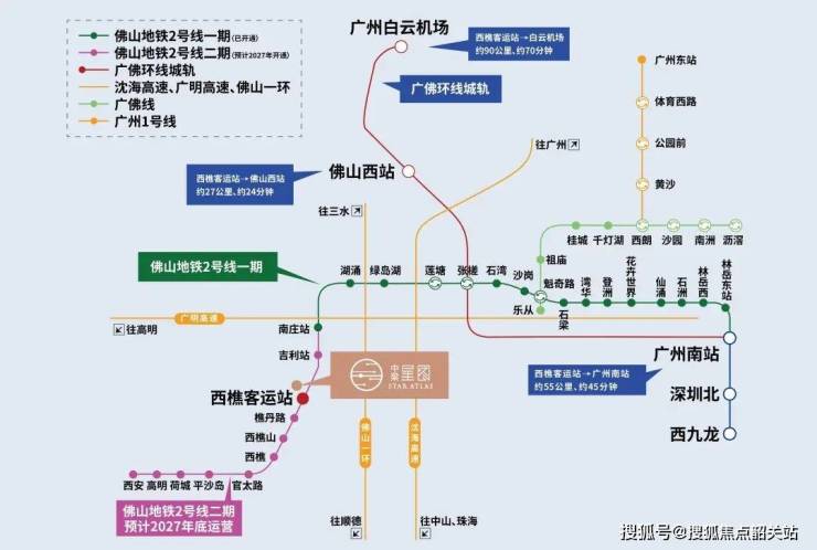 项目600米即规划中的佛山地铁2号线西樵客运站,地铁连接广佛两地。