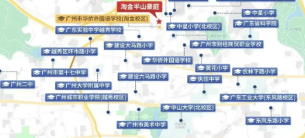 淘金半山豪庭·御庭自配建有九年一贯制的广州华侨外国语学校,这是广州首间公办九年一贯制外语特色学校。根据最新数据,该校小升初比例高达约56%,中考成绩连续14年居于越秀区辖公办学校之首。此外,项目周边名校林立,包括执信中学、广州二中、广大附中等重点优质公办学校,形成了优越的小升初配置。