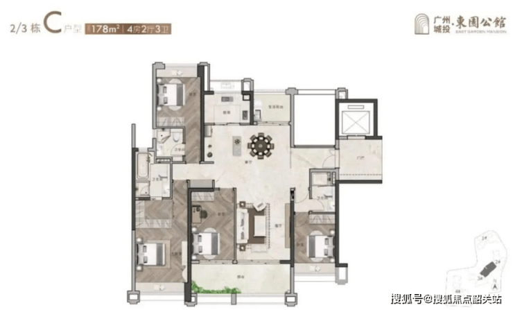 东园公馆共推出7个户型,面积从91㎡到178㎡不等,涵盖三至四房,适应不同家庭结构的需求。每种户型都注重实用性和舒适性,尤其是大面积户型,提供了更为宽敞的生活空间。