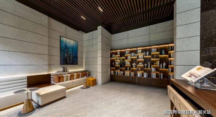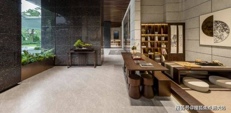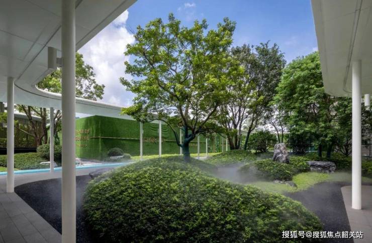 漫步到达生活会客厅空间,视线与中部水景廊架处豁然开朗,并惊叹于“行云流水”场景氛围。