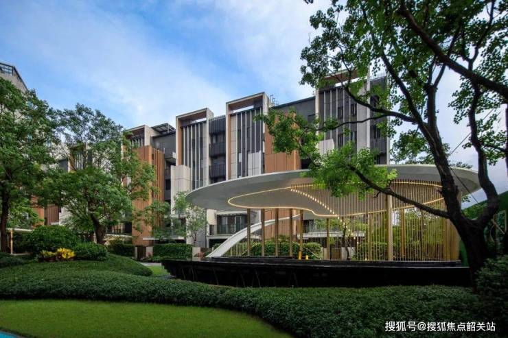 特色水景廊架顶置星空特色香槟金格栅点缀勾勒,灵动优美,营造了一个别具一格的社区文化交流空间。
