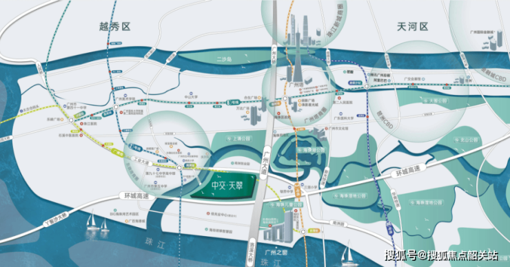 中交天翠地处海珠区核心地段,距离南洲地铁站仅约400米,步行几分钟即可到达。该站点不仅是2号线和广佛线的交汇点,还提供了通往珠江新城、琶洲等重要商务区的快速通道。此外,项目周边还有广州大道和广州绕城高速,形成了四通八达的交通网络,极大提升了居民的出行便利性。