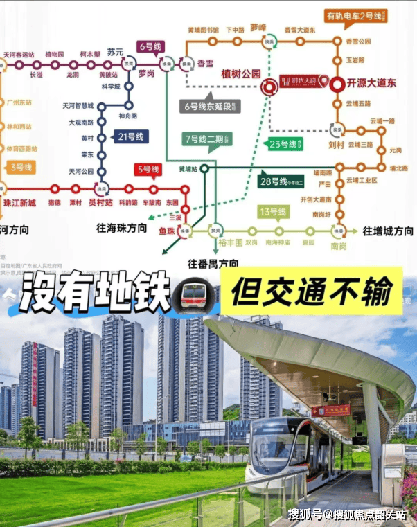 交通方面,项目距离最近的地铁6号线香雪站约3.8公里,虽然稍远但可通过黄埔有轨电车2号线开源大道东站(距项目仅100米)便捷换乘。此外,规划中的地铁6号线东延段和23号线将在附近的植树公园站交汇,进一步增强了交通便利性。自驾出行时,周边主干道如开源大道、开创大道以及小区门口的玉岩路隧道也为居民提供了高效的通勤路线。