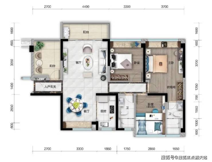 开间约4.4m奢阔客厅,约3.7m开间阔绰主卧,收纳美景风光,舒适居住