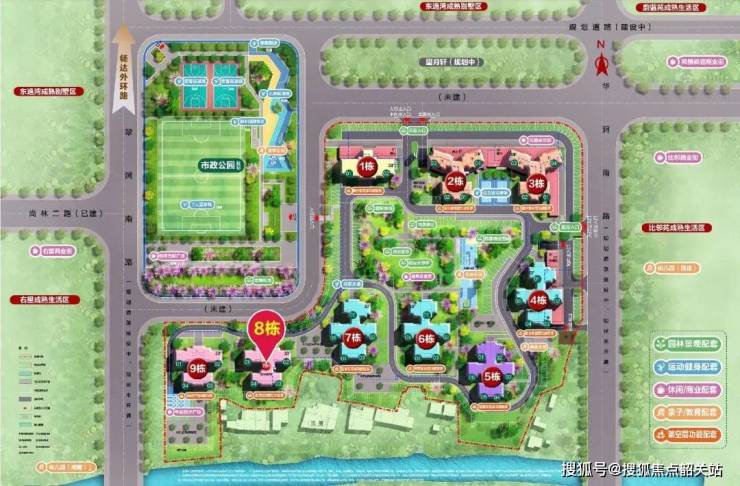 周边休闲配套:顺德新体育中心(在建)、文化四馆(在建,含顺德图书馆、顺德博物馆、顺德演艺中心、顺德新科学馆)
