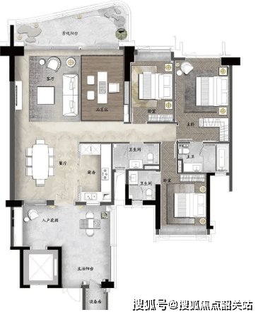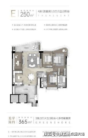 A户型作为项目的王牌户型,面积达270平方米,拥有约9米超大邮轮式阳台,实现270度环幕江景无遮挡视野。专梯专户设计将墅级空中双花园的概念引入空中,约28平方米的私家庭院与42平方米的主卧空间相得益彰,主卧配备衣帽间及四分离卫生间,星级套房设计尽显奢华。B户型约200平方米,同样具备一线临江的270度环幕视野,独立电梯入户,多功能入户花园设计增加了空间的实用性,客厅与书房打通,开间可拓展至7.2米,简约半开放式厨房满足美味品味兼得的需求。C户型约140平方米,以超高性价比和南向园景大宅定位,三卧室朝南设计,阔绰双主套房,独立电梯入户,同享两千万豪宅交标配置。