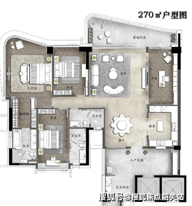 南天名苑的主力户型设计充分考虑了不同年龄段、不同家庭结构的居住需求,实现了全龄适配与高得房率的完美结合。高层洋房产品以23至27层为主,层高达到3.3米,采用4梯3户的超宽梯户比设计,极大提升了居住的私密性与尊贵感。户型面积段涵盖140平方米至270平方米,均为四房双主套设计,空间布局科学合理,南北通透,采光通风极佳,动静分区明确,动线流畅合理。