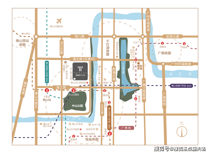 项目交通优势显著,地铁3号线中山公园站距离项目约300米,预计通车后可快速抵达桂城和广州各核心区域,未来地铁5号线和7号线也将交汇于此,形成三地铁汇聚的立体交通网络,广佛同城生活便捷高效。此外,项目周边规划广湛高铁佛山站,高铁交通带来的虹吸效应将进一步提升板块价值。海五路主干道的建成,使得居民驾车前往千灯湖、祖庙及佛山各核心商圈仅需十分钟左右,实现快速通达和生活便利的完美结合。