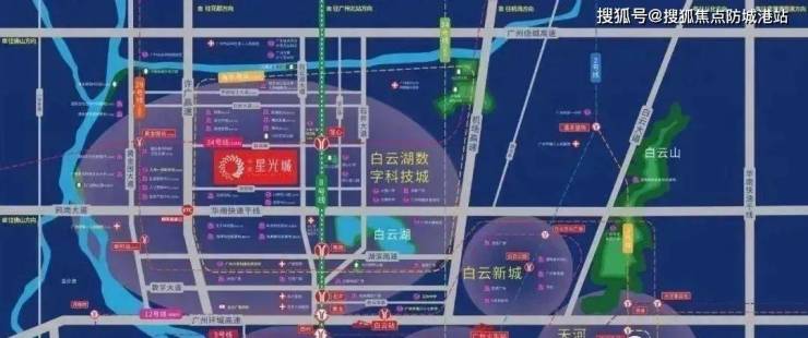 广州“十四五”规划明确,白云湖数字科技城将打造为“数字中国”实践高地,总投资超千亿,引入百度、华为等科技巨头。中建星光城占据区域核心,地铁8号线滘心站(约400米)串联珠江新城、琶洲CBD,1站换乘13条线路,通勤效率远超同区域项目!