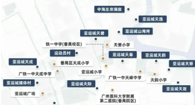 亚运城规划了19所学校,涵盖从幼儿园到高中的教育需求,目前已有18所学校开学,其中包括知名的广铁一中。