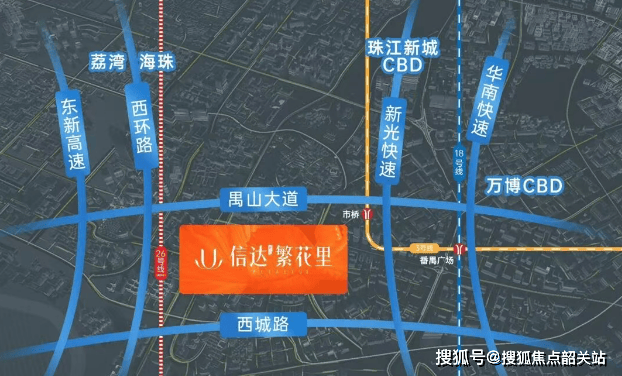 公共交通方面,项目步行约1.7km可达3号线市桥地铁站,1站长隆、番禺广场,换乘7号线2站可达万博CBD,3站抵达海珠区,8站直达珠江新城,可任意接驳18号线、22号线等多条地铁线路,高效通达全城。随着广州第四期地铁规划的推进,与3号线基本平行的26号线入围概率极大,根据最新线位流出信息,26号线有望在禺山大道和西环路交界处设站,未来信达·繁花里有望成为地铁上盖物业,交通优势将进一步升级。