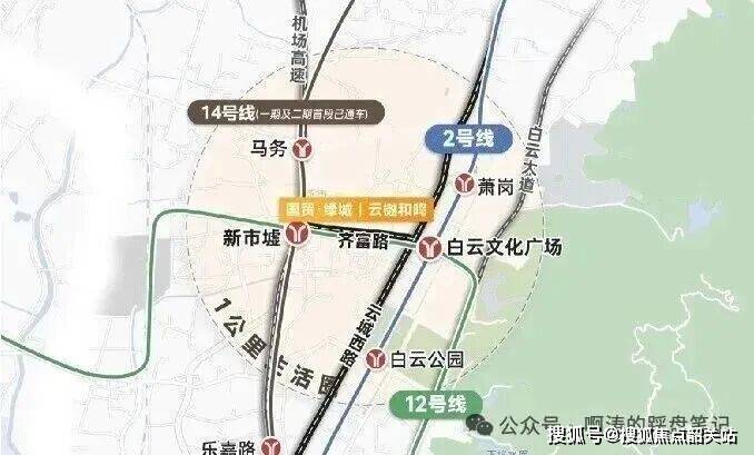 国贸・绿城 | 云樾和鸣构建了多维立体的交通出行体系,实现了轨道交通、城市路网的全维度覆盖,可快速通达广州全城核心板块。项目与广州地铁 2 号线、12 号线白云文化广场站直线距离仅 400 米,步行 5 分钟即可抵达站点,与在建的地铁 14 号线二期新市墟站直线距离约 800 米,三地铁环绕的交通格局大幅提升了出行便捷性。其中地铁 2 号线作为广州南北向核心干线,可一线直达越秀、海珠核心区,地铁 12 号线作为广州东西向加密干线,可快速串联白云、越秀、海珠、琶洲等核心板块,通过地铁换乘可实现与广州 13 条地铁线路的全面联通。自驾出行方面,项目紧邻齐富路、云城东路等城市主干道,10 分钟内即可接驳机场高速、广州环城高速,30 分钟左右可直达天河 CBD,20 分钟可抵达广州白云国际机场,构建了覆盖全城、联动湾区的高效交通网络。