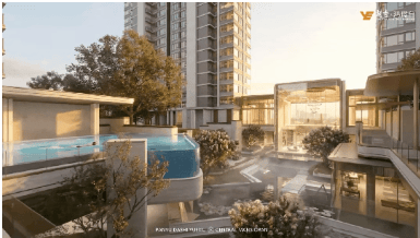 三、施工建筑:酒店式会所+下沉式立体园林+三层隔音玻璃,越秀精工打造步步高升归家仪式