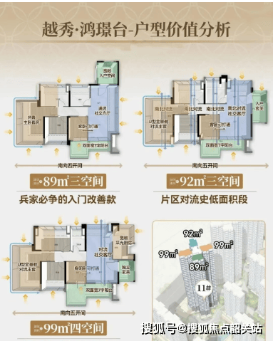 四、户型:89-122㎡全南向新规三四房,得房率约100%以上+大面积阳台+入户花园,改善品质标杆