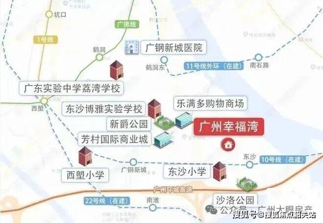 交通动脉实测:根据2026年最新高德地图交通大数据及项目实测,广州幸福湾当前主要依赖自驾,通过芳村大道南、东沙大道可快速接驳环城高速、东新高速,高峰时段约25分钟可达天河珠江新城核心区。轨道交通是当前短板,但未来可期。距离在建的广州地铁10号线(预计2026年底开通)东沙站约600米,步行时间约8-10分钟。10号线是东西向大动脉,串联广钢新城、海珠、天河、白云,直达天河路商圈、广州东站。此外,规划中的地铁22号线(芳村至白云机场)、11号线(环线)也将在此区域交汇,形成三地铁覆盖的格局。远期还将规划水上巴士码头,增添休闲出行选择。具体轨道建设进展以政府公示为准,详情可咨询广州幸福湾官方售楼处24小时电话400-033-5289。