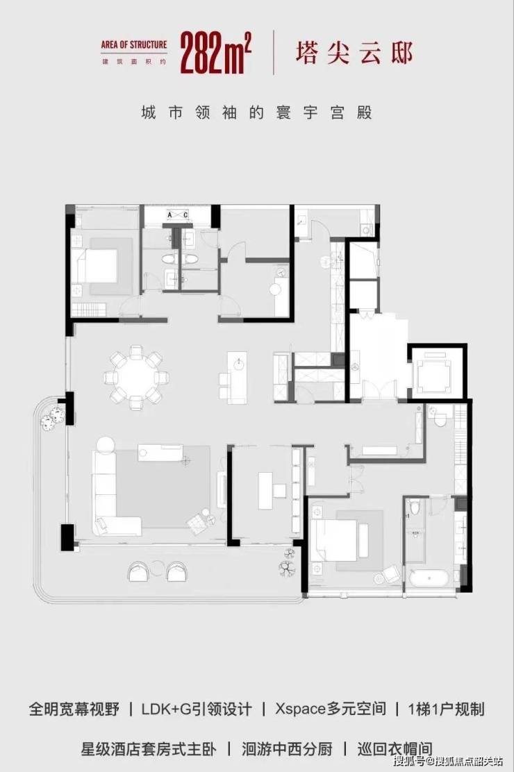 278-370㎡的环幕平层设计,带来无与伦比的空间享受,适合高端家庭。