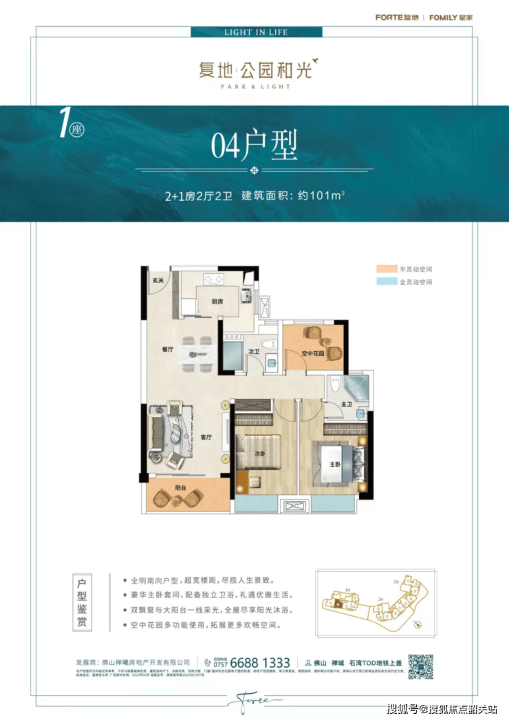 复地·公园和光是由复星集团旗下复地产业发展集团倾力打造的禅城核心区域高品质住宅项目,位于佛山市禅城区石湾板块,紧邻广佛线石湾站B出口,真正实现地铁上盖的TOD城市综合体概念。项目总占地面积约3万平方米,总建筑面积约21.19万平方米,涵盖住宅、商业、健康配套等多种业态,定位为“全龄宜养健康蜂巢综合体”,致力于打造主城宜居新标杆。项目主力户型涵盖建面约73-120㎡两至三房,满足刚需、改善及家庭健康生活需求。作为复星在华南区域的首个健康蜂巢项目,复地·公园和光凭借优越的区位、成熟的配套与品牌实力,成为城央置业的热门之选。