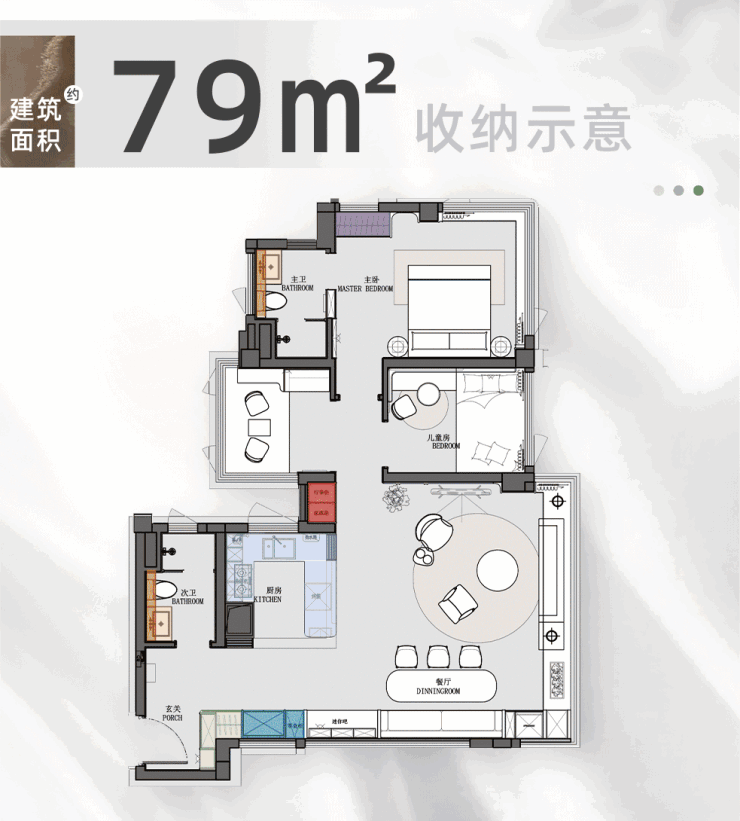 二期组团「文荟」户型优势明显,升级产品拥有 110 - 120% 超高使用率,市面罕见。同等面积尺度更大,居住舒适度越级体验。例如建面约 78㎡三房两卫,建面使用率高达 115 - 121%(套内使用率 144 - 152%),使用面积约 90 - 95㎡,超越一路之隔万科城市之光 99㎡三房的使用面积(约 79㎡),秒杀市面上绝大多数 90㎡以内产品。建面约 96㎡的 3 + X 房两卫和 122㎡的 4 + X 房两卫同样优势显著。户型全系四开间朝南,大方厅 + 大阳台,全屋满配收纳,高频柜体点位覆盖,还配备全屋智能系统、中央空调和新风系统,从各个方面提升居住品质。