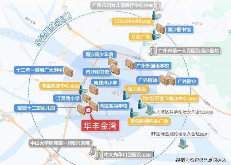 地理位置方面,项目坐落于南沙明珠湾起步区灵山岛尖,作为南沙自贸区七大板块中唯一的金融服务板块、全国首个国际金融岛,这里汇聚了国际金融论坛总部IFF、广州期货交易所(全国第五所)、粤港澳大湾区国际商业银行等核心金融机构,东侧商务区已聚集中交汇通中心、星河发展大厦、越秀国际金融中心等世界500强企业及10多个总部基地,规划比肩珠江新城,成为大湾区的价值高地与发展核心。