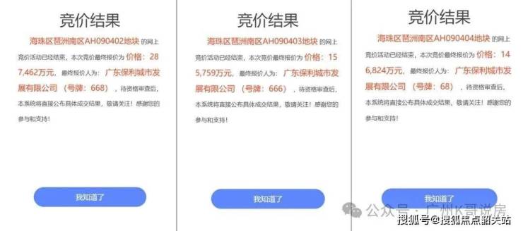 2024年10月30日,保利成功以底价摘牌海珠区琶洲南区AH090402、AH090403、AH090404地块,三宗地总建面13.8万㎡,总价约59.01亿元,楼面价为4.25-4.3万元/㎡,琶洲南三兄弟由此而生。