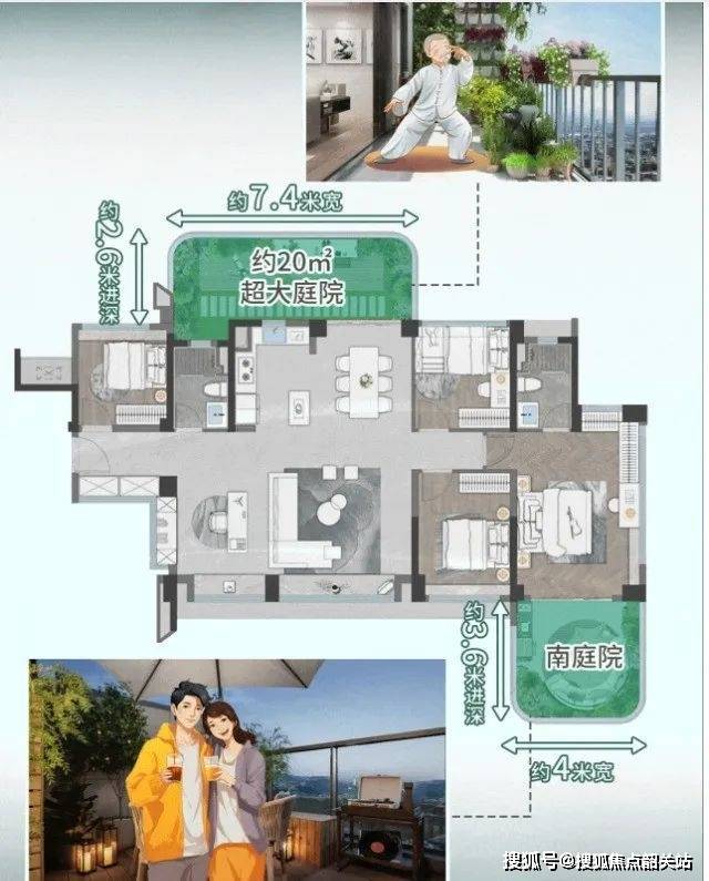 110平方米四房:采用LDK一体化设计,客厅开间达到6.8米,空中花园面积达33平方米,可改造为“4+1房”,实用率为139%至141%。