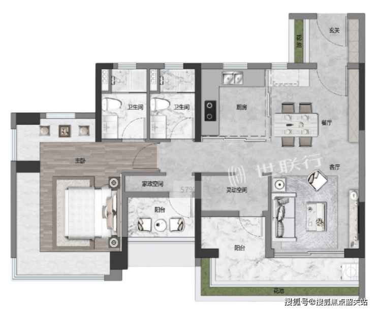 • 约5.7米南向开阔阳台