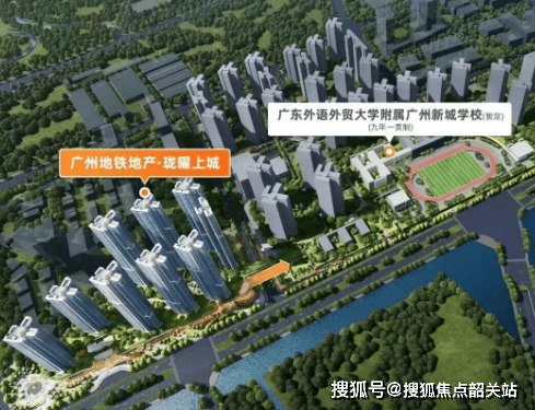 周边生活资源正在快速成型。项目西侧金龙城财富广场已有麦当劳等连锁品牌入驻;自建约4000㎡商业长廊(在建)计划引入肯德基等日常所需业态。两站地铁到番禺广场,那里有永旺梦乐城、基盛万科里、区图书馆、博物馆以及在建的龙湖天街。教育方面,配建的广东外语外贸大学附属广州新城学校(九年一贯制)已签约,未来孩子从家门到校门全程人行步道,真正实现“目送上学”。