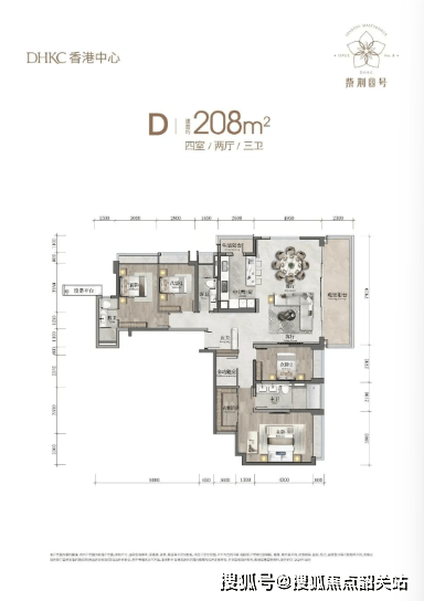 约 208㎡大四房配备高端入户子母门,阔绰双阳台、双主卧套房,更设有独立长辈套房,兼顾三代同堂的私密性与舒适度;典藏复式则以恢弘尺度,为塔尖人群提供终极居所选择。全屋选用国际顶级品牌,博世厨电三件套(油烟机、燃气灶、洗碗机)、嵌入式冰箱与蒸烤一体机、厨房专用空调、安吉尔净水器等,细节处彰显品质;20cm 厚度的毛坯楼板(装修后约 25cm)有效隔绝噪音,公区石材通铺与天然奢石 “芬迪白” 背景墙,更显空间质感。