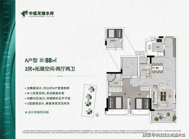 项目主打建面约88-118㎡三四房,全系户型做到100%使用率,亮点包括: