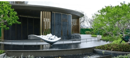 三重大堂门厅设计:第一重——酒店式入户大堂,挑高6.6米,三面通高的玻璃幕墙;第二重——花园大堂;第三重——专属归家大堂。