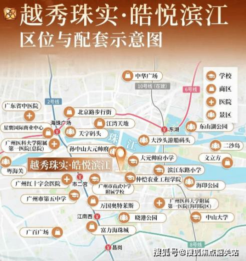 项目地处海珠桥与海印桥之间,属于滨江中板块的核心位置。周边交通便捷,自驾可通过江湾大桥直达越秀区,瞬达天河;公共交通方面,虽然距离最近的地铁站(2号线市二宫站)约1.2公里,但东侧正在建设的10号线滨江东站将极大改善出行便利性。