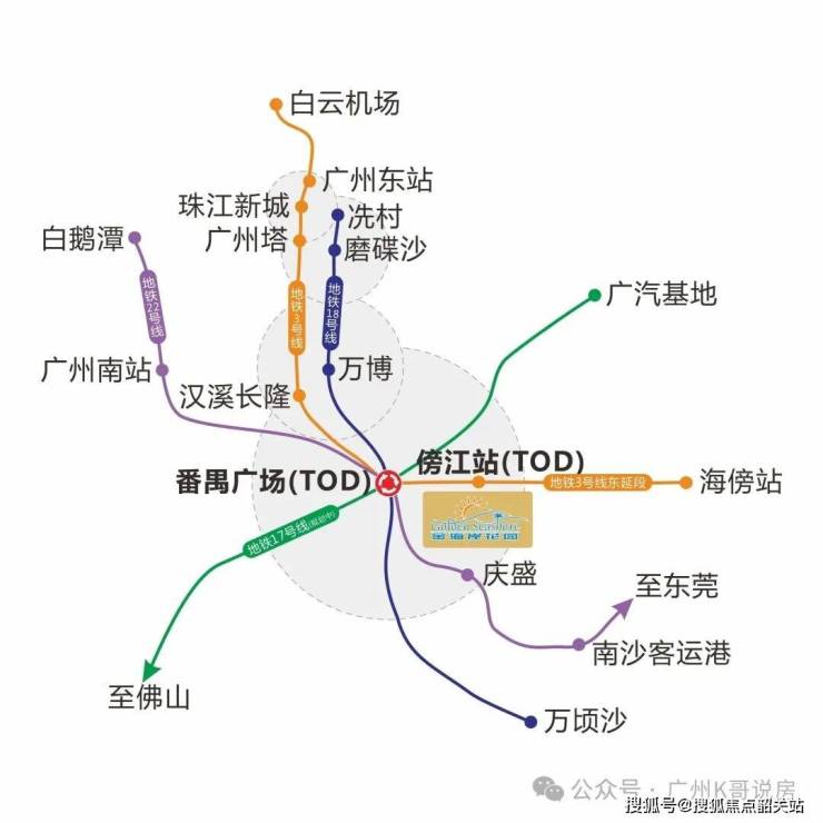 金海岸花园紧邻3号线东延段傍江站TOD,1站直达番禺广场、2站万博CBD、3站广州南站及琶洲、4站即达珠江新城,畅享番禺广场TOD及未来规划发展的经济红利!