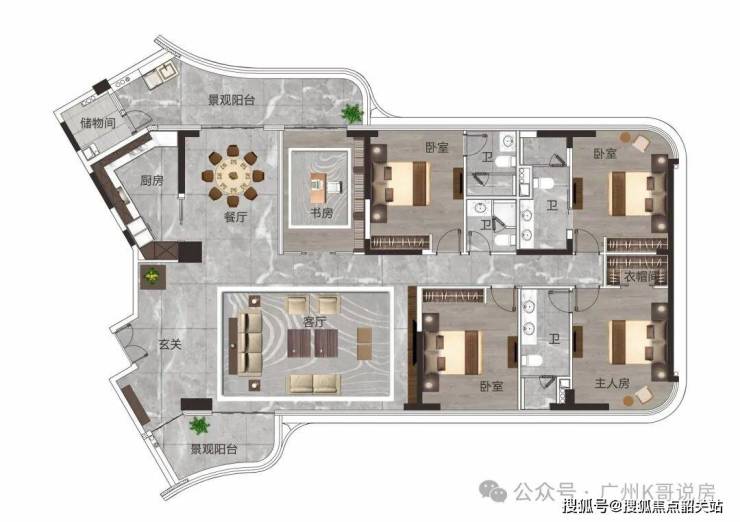 建面约284㎡,四房两厅三卫