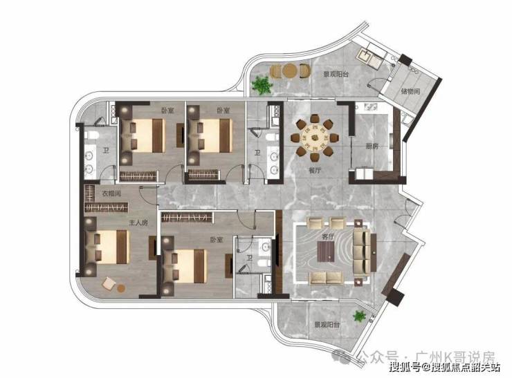 云起兴泰85-135㎡奢装洋房产品户型均为高拓展面积户型,入户花园、阳台、飘窗、卧室、露台等均有赠送空间;可随心打造成多功能百变空间,满足居者使用需求;推窗更可饱览水岸优质景观,为室内平添绿意。