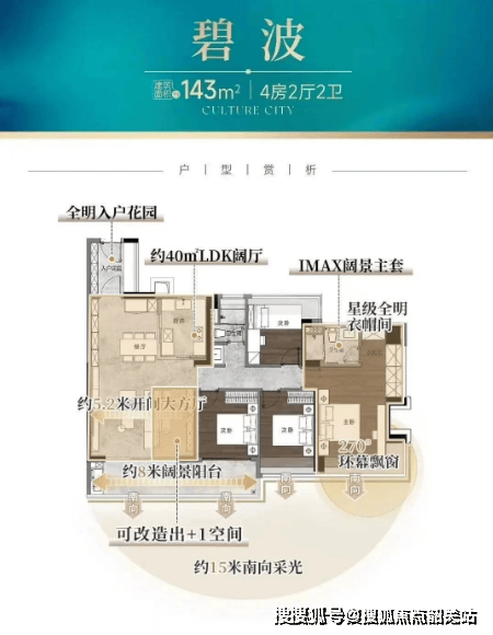 130㎡四房:五开间朝南+南北双阳台,得房率85%,总价680万起!