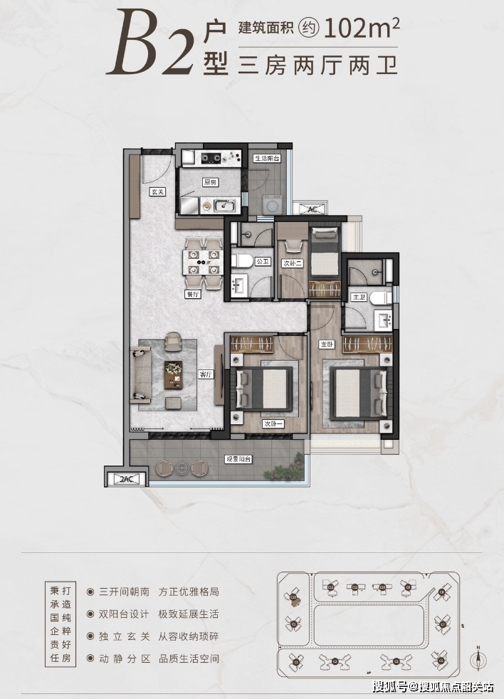 科苑壹号推出的户型面积约为102-127平方米的全南舒适三至四房,所有住宅均采用两梯三至四户全南向设计,低密度梯户比,配备双层隔音玻璃,远离城市喧嚣。这种设计不仅保证了居住空间的开阔感,同时也提升了生活的私密性和舒适度。