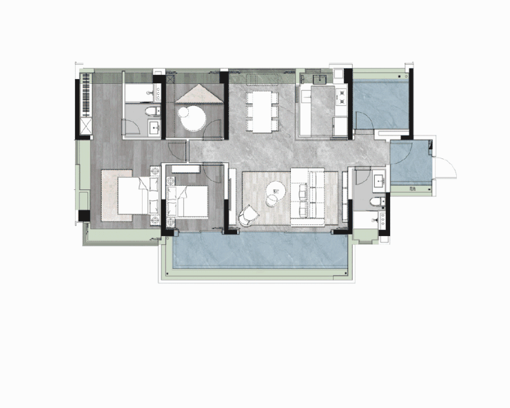 答:该户型的阳台设计为跑道式,宽度达到2.2米,长度在8至9米之间,总面积约17平方米。这样的尺度足以在满足日常衣物晾晒功能的同时,预留出宽敞的区域摆放休闲桌椅、绿植甚至小型健身器材,形成一个独立的空中花园或观景平台,充分契合广州人喜爱户外活动的居住习惯。