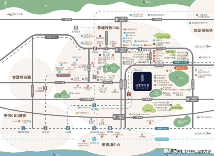 合生中央城虽非直接的【区府+TOD】双核心项目,但处于科学城行政与产业核心辐射区,同时依托交通网络形成类TOD发展模式。项目临近黄埔区府板块,享受区府周边完善的行政服务、文化设施与政策红利,区域规划与配套升级优先落地。