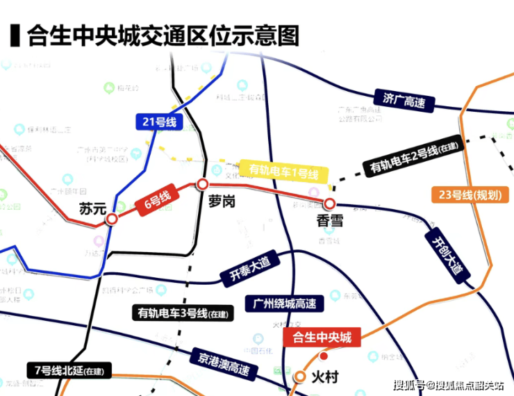 合生中央城虽不直接临地铁,但通过“公交接驳+自驾路网”构建起便捷的湾区交通网络。距离最近的6号线香雪站约2.6公里,业主可骑行电动车约10分钟抵达,或乘坐社区公交首末站的接驳车辆直达地铁站,6号线串联起黄埔与越秀、天河等主城区,轻松通达核心商圈。