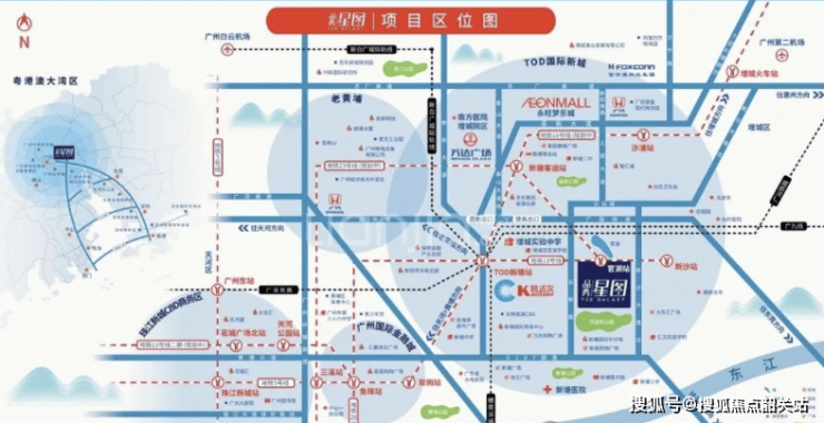 2. 战略高地 价值引擎 越秀星图TOD地处新塘核心,左拥广州第二CBD、右靠广州东TOD,一路衔接黄埔,执掌两大穗港合作区红利。广州第二CBD黄埔临港经济区20个重点项目总投资超1300亿,正接棒珠江新城成为发展新极;新塘作为增城最具价值板块,瑶田村旧改纳入规划,区域能级持续跃升。项目由越秀地产与广州地铁双国企联合打造,以TOD模式将产业、交通、居住深度融合,承接黄埔产业外溢与天河人口导入,成为产城融合新样板,擎动区域未来价值持续攀升。