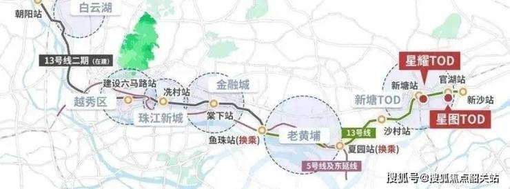 4. 立体交通 多维轨交网络交织成网,越秀星图TOD堪称地铁“亲儿子”,小区东西主入口距13号线官湖站450米、新沙站650米,步行5-10分钟即达。13号线二期通车后可直达天河,当前官湖站3站到黄埔、多站至珠江新城,高峰期乘车舒适度高。项目作为TOD综合体,无缝衔接地铁网络,13号线串联新塘与广州核心区,未来与13号线二期贯通后,通勤效率再升级。对于在金融城、珠江新城工作的人群,地铁通勤高效便捷,多维轨交网络重构生活半径,让工作与生活切换从容自如。