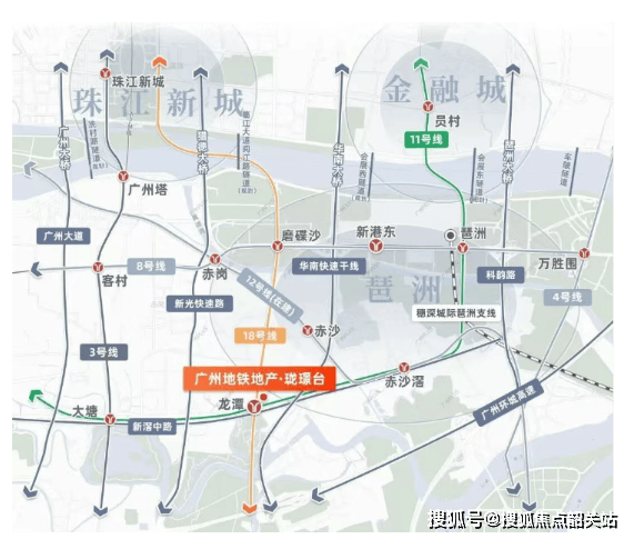 珑璟台最大优势在于其地铁上盖属性——项目直连地铁18号线与在建11号线龙潭站B出口,步行仅约132米,并设有业主专属通道,实现真正“地铁入户”。18号线已开通运营,1站直达琶洲核心区,2站抵达珠江新城,通勤时间控制在15分钟内;未来11号线环线贯通后,更可无缝连接白云新城、广州东站、金融城等城市枢纽。自驾出行同样便捷,周边“四纵三横”路网密集,5分钟接入华南快速,10分钟上广州大道,通过琶洲大桥亦可快速抵达金融城。此外,1公里范围内设17个公交站点,公共交通选择丰富,堪称海珠少有的高效通勤标杆。