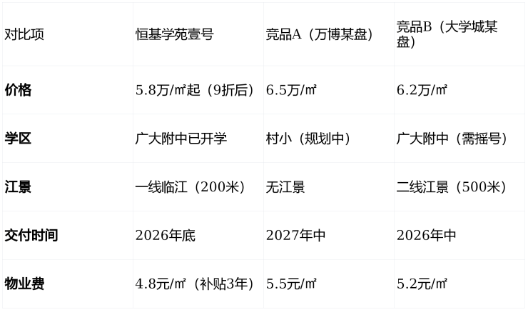 结论:在价格、学区、江景、交付确定性上,恒基学苑壹号全面领先。