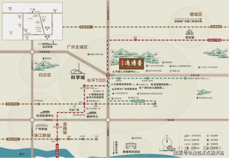交通是衡量一个区域价值的重要标尺,而中冶·逸璟台在交通配套上的表现堪称卓越。项目构建了“七轨连城”的交通网络,包括地铁21号线、黄埔首条有轨电车T1号线以及规划中的高速地铁线,实现了与天河、市中心及远郊的快速连接。