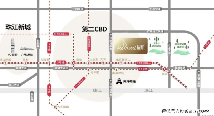 - 主干道:紧邻黄埔东路,无缝接驳中山大道、黄埔大道、沿江大道,自驾20分钟可达天河智慧城,30分钟直达珠江新城,40分钟可达白云机场【官方实测数据】。