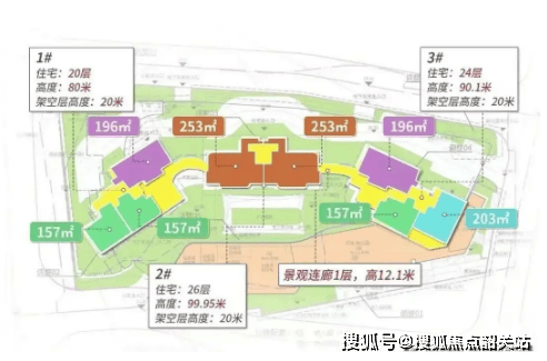项目共规划3栋高层住宅,层高20-26层,总户数仅166套。主要户型包括157㎡四房两厅两卫、196㎡双主套四房两厅两卫以及253㎡南北对流四房两厅两卫。每个户型都采用了双阳台设计,部分户型还配备了270度全景飘窗,极大地提升了居住的舒适度和视觉享受。