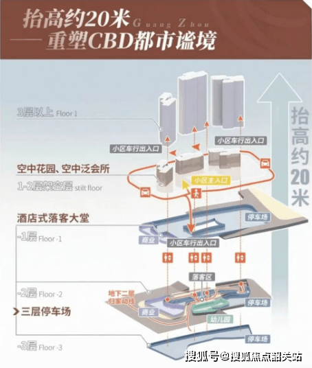 创新的设计理念:整体小区设计抬高约30米,实现人车分流,增加居住的私密性和安全性。